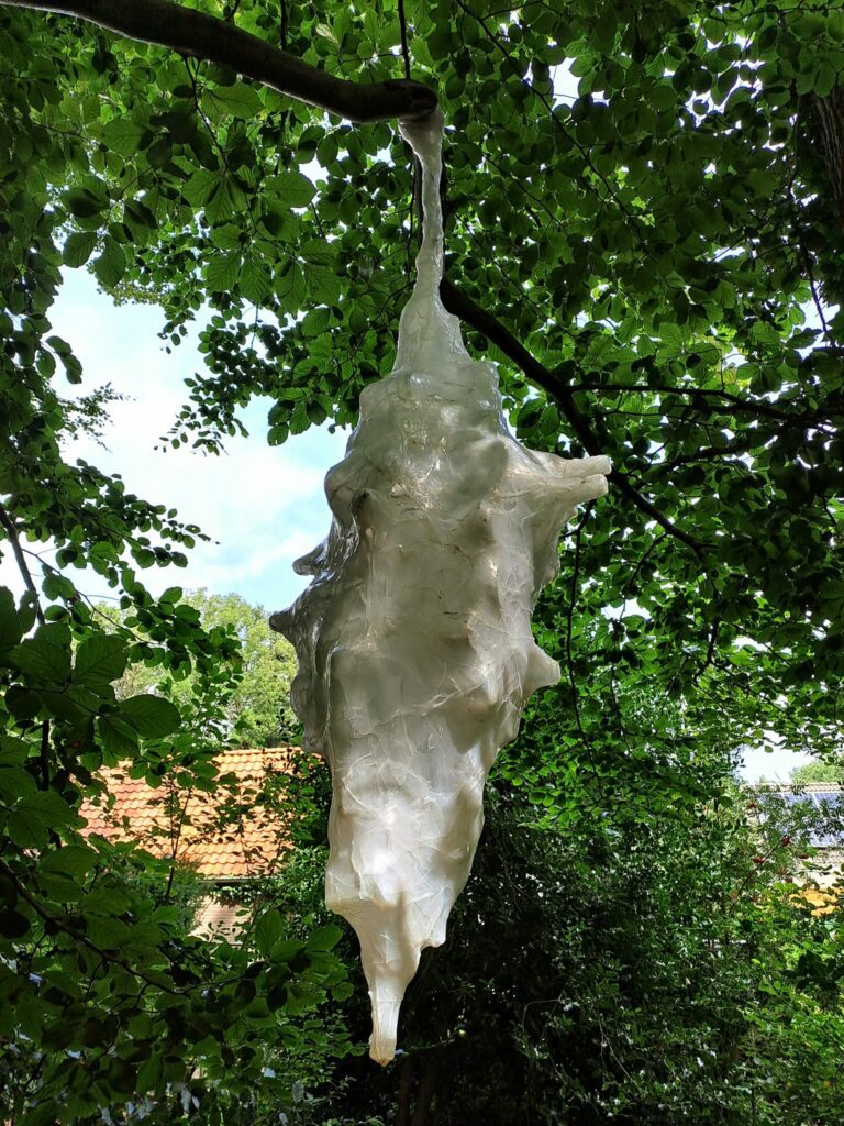 Cocons Gevangen glas verwrongen door het plastic dat hangt als