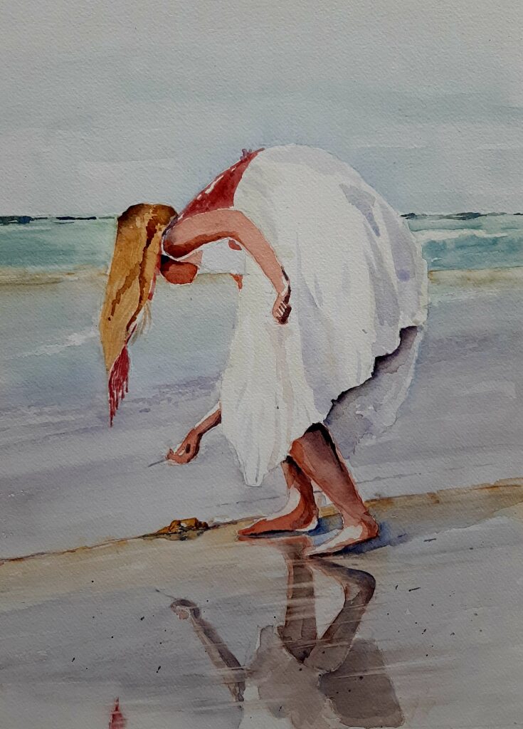 Van het begin af aan heeft aquarel zijn voorkeur. Prachtig om te zien hoe de verf met water een eigen leven gaat leiden. Soms is het stuurbaar maar meestal is het effect later zichtbaar.