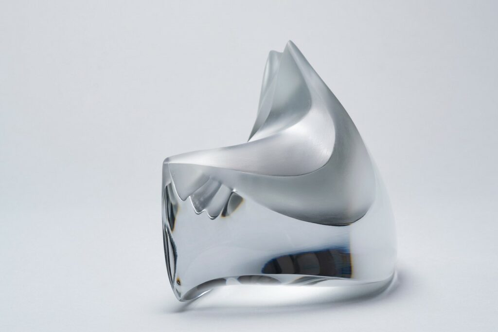 Helder of gekleurd kristalglas: als een beeldhouwer onttrekt de kunstenares haar sculpturen aan dit fascinerende materiaal. In een speciale wisselwerking met licht en ruimte ontwikkelt het zijn eigen beeldtaal. Door een proces van zagen, hakken, slijpen en polijsten weet ze die beeldtaal te vangen in vloeiende vormen. Het is een proces waarin wederzijdse “ reflecties “ van maker en glas zich uitkristalliseren in composities van visuele poëzie.